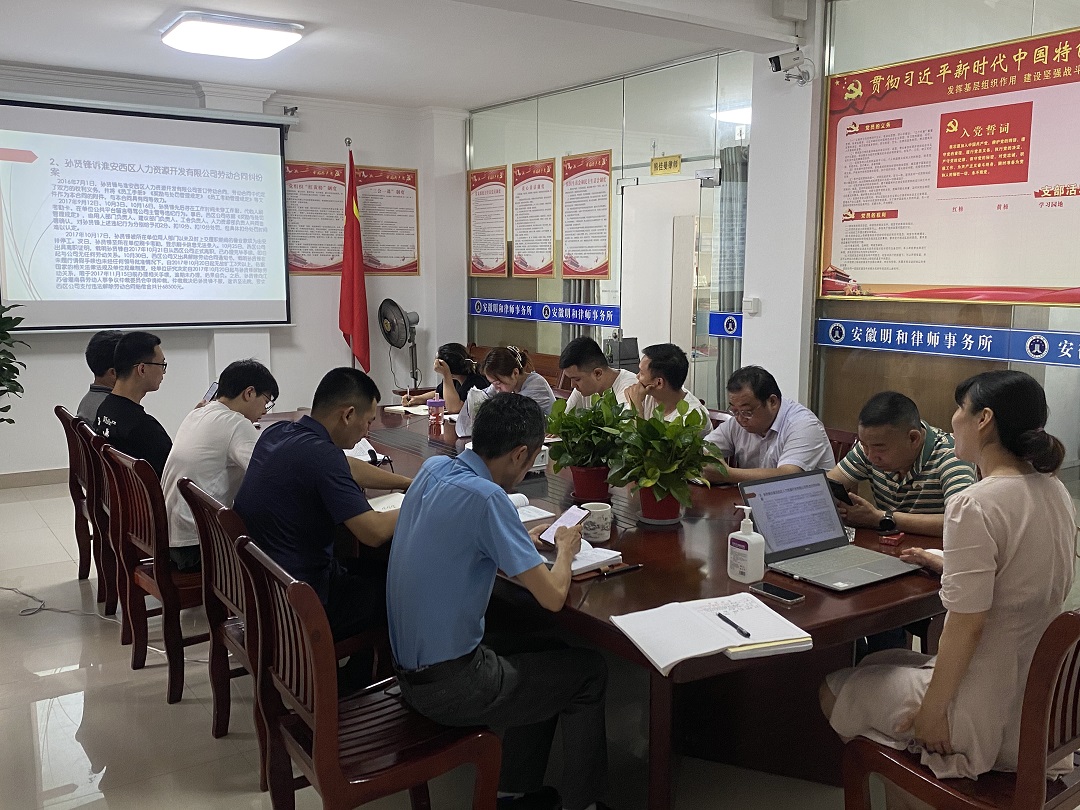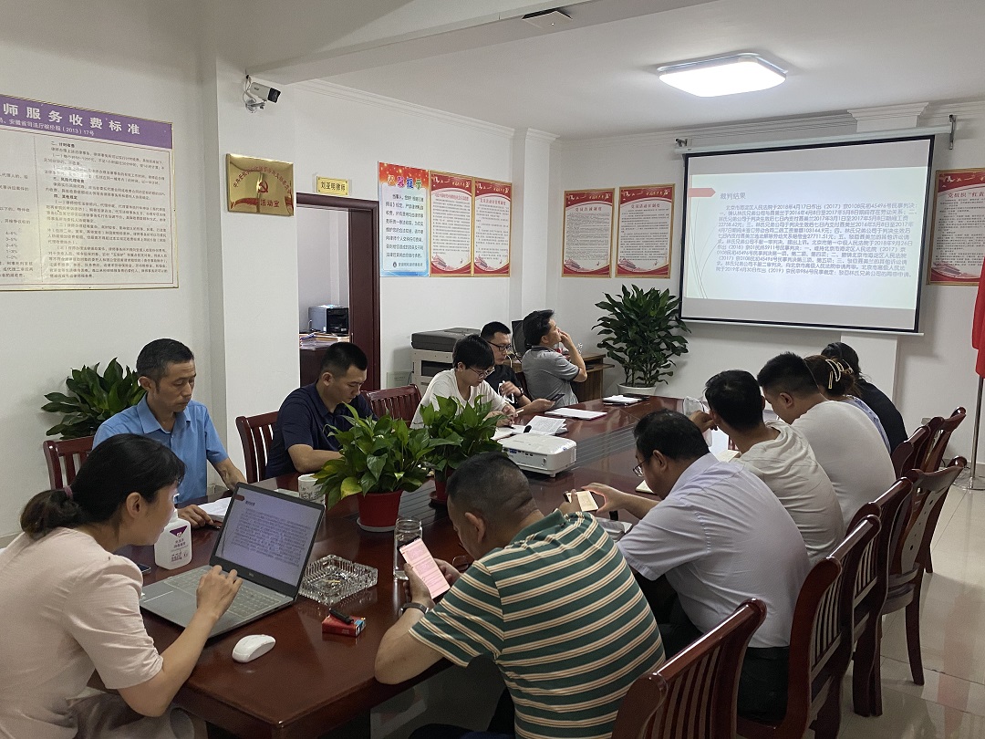 2022年7月10日下午,本所召开政治学习会议之后紧接着召开业务学习会议,学习最高人民法院发布第32批指导性案例,促进全所律师业务水平不断提升。由本所周婷律师领学,本所全体律师参加会议。