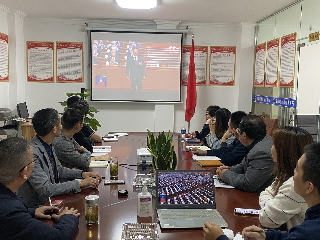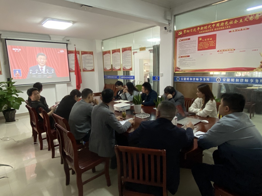 2022年10月16日,中国共产党第二十次全国代表大会在北京召开。上午10点整,我所组织全体律师、四名党员律师集中收听、收看党的二十大开幕式,所有人以饱满的政治热情和昂扬的精神状态认真收看。