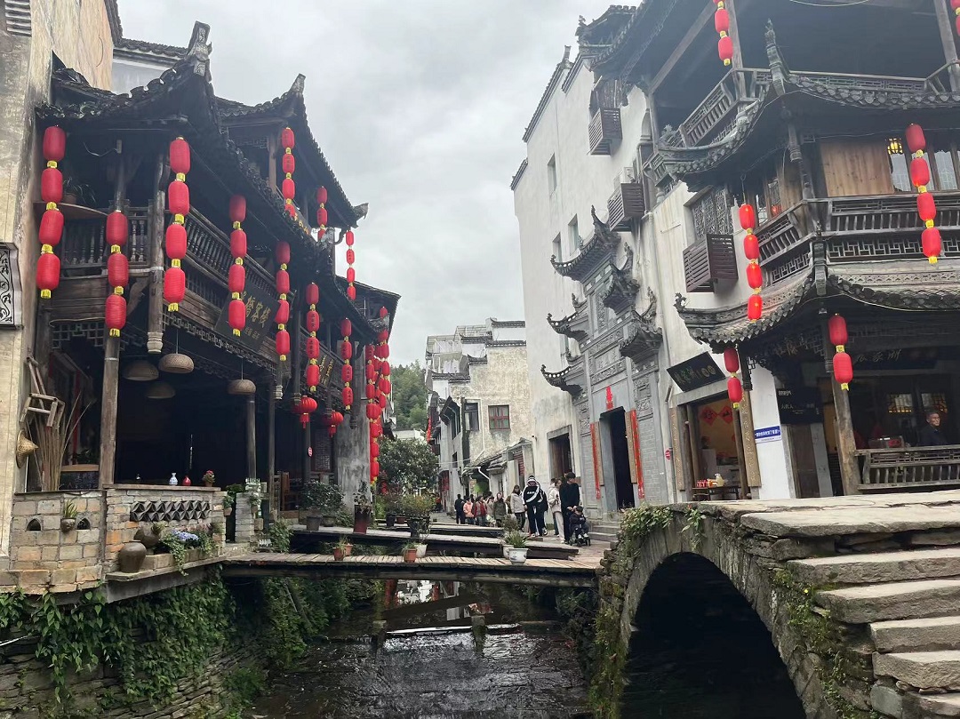 最后,游小桥流水人家,村落群山环抱,风光旖旎,明清古建遍布;村内街巷溪水贯通、九曲十弯;数十座溪桥沟通两岸,构筑了一幅小桥、流水、人家的美丽画卷。古朴典雅的明清民居,曲折宁静的街巷,青石铺就的驿道,野碧风清的自然环境,遮天蔽地的古树,构筑了天人合一古文化生态村晓起。