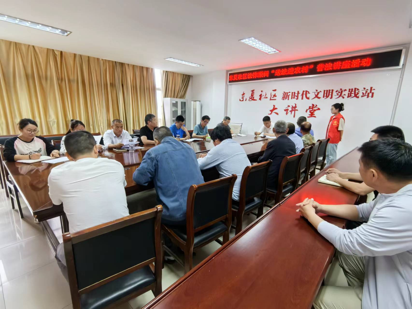 为切实加强农村法治宣传教育,增强广大居民群众法治意识和依法维权能力,2024年5月30日,本所岑宽律师积极参加东夏社区法律顾问“送法进农村”普法讲座活动,通过现场与群众面对面沟通,解答婚姻家庭等相关法律问题。