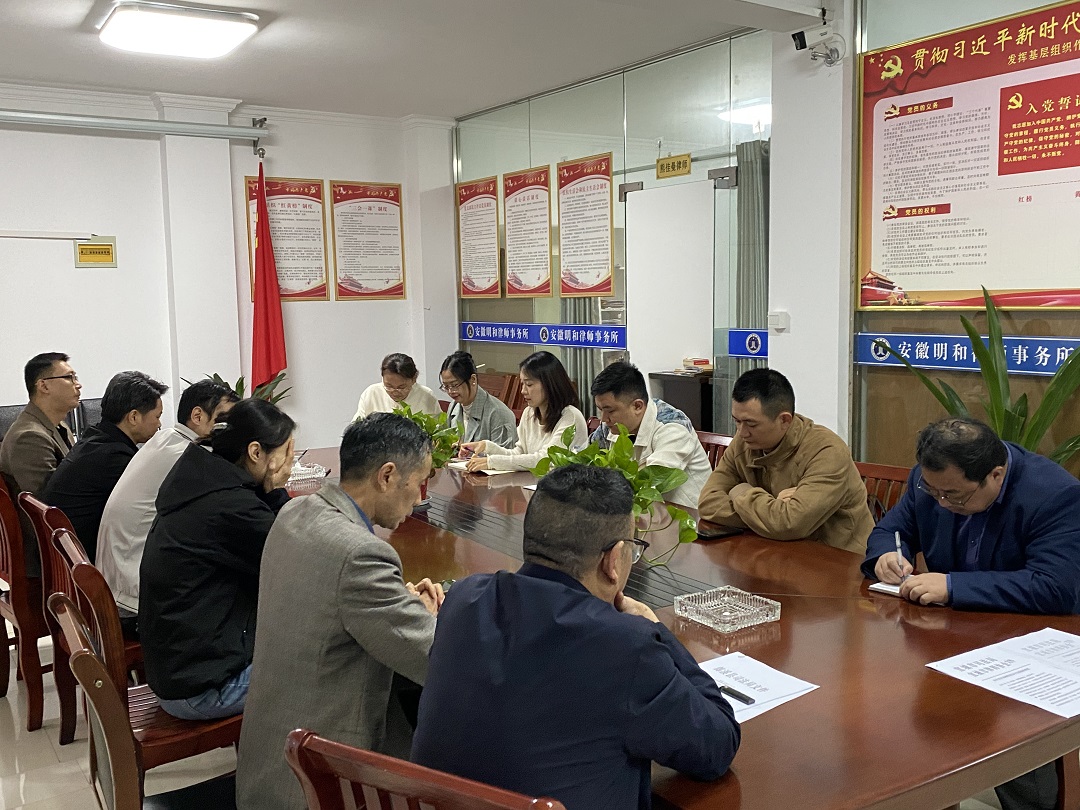 2024年11月6日郎溪县司法局党组成员、副局长罗海飞、郎溪县司法局公法股股长邵玉魁莅临本所传达关于县司法局印发《郎溪县“村(居)法律顾问”工作制度》的通知、关于进一步加强和规范村(居)法律顾问工作的意见和法援卷宗归档情况, 本所主任高度重视,2024年11月8日立即针对相关问题进行开会讨论并提出具体整改措施。